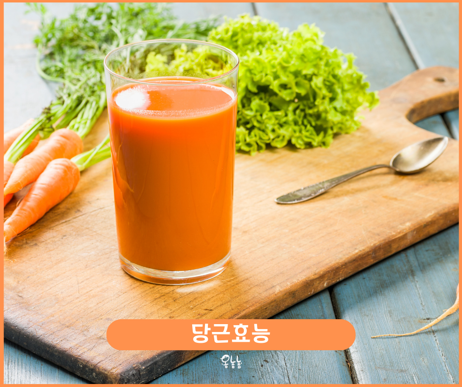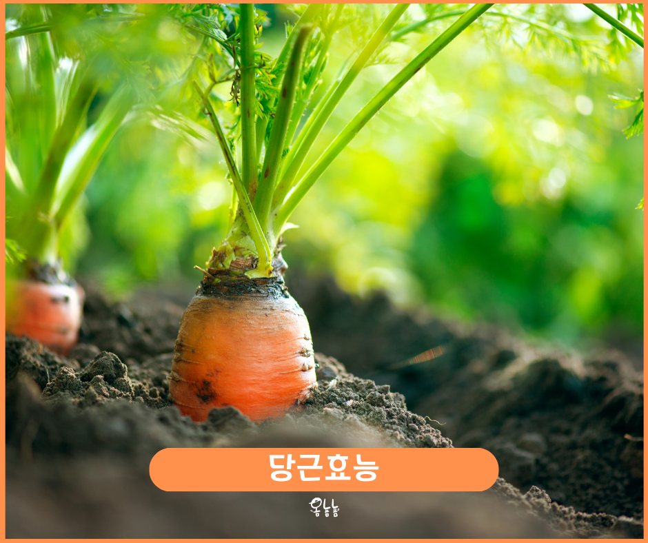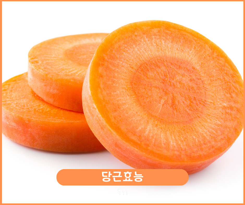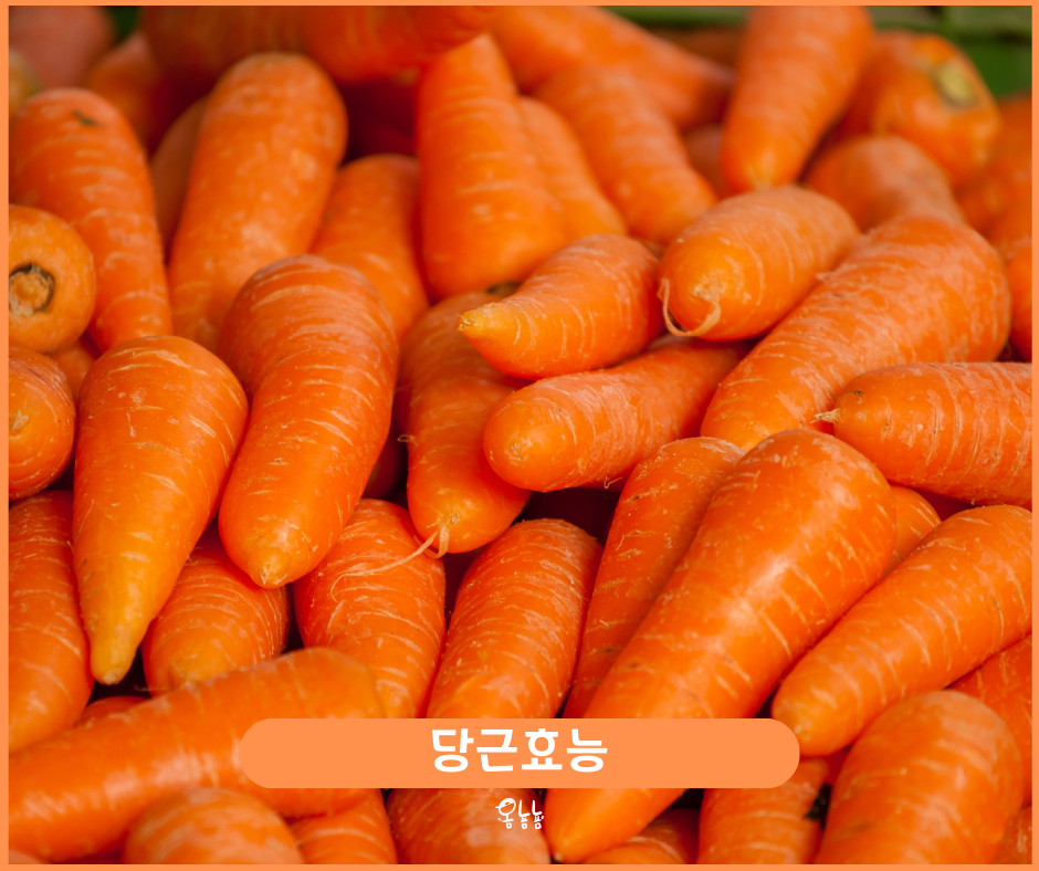 당근은 비타민 A, 베타카로틴, 팰캐리놀, 레티놀 등의 영양성분을 함유하고 있습니다. 이러한 성분들로 당근 효능은 눈 건강, 백내장 및 황반변성 예방, 폐 건강, 암 예방, 피부 및 모발 건강, 다이어트, 변비 개선, 면역력 강화, 동맥경화 예방, 뼈 건강 등에 도움을 줍니다.