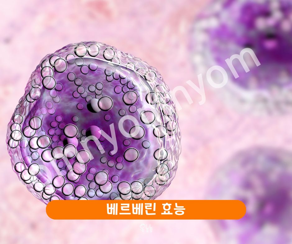 베르베린은 강력한 항염 및 항산화 특성을 가지고 있어 전반적인 염증 수준을 낮추고, 산화 스트레스를 완화하는 데 도움을 줍니다. 즉 염증 반응을 억제하고, 활성산소를 중화시켜 세포 손상을 방지합니다.