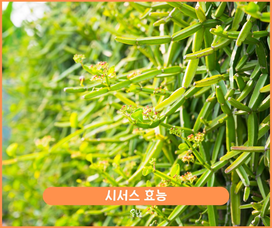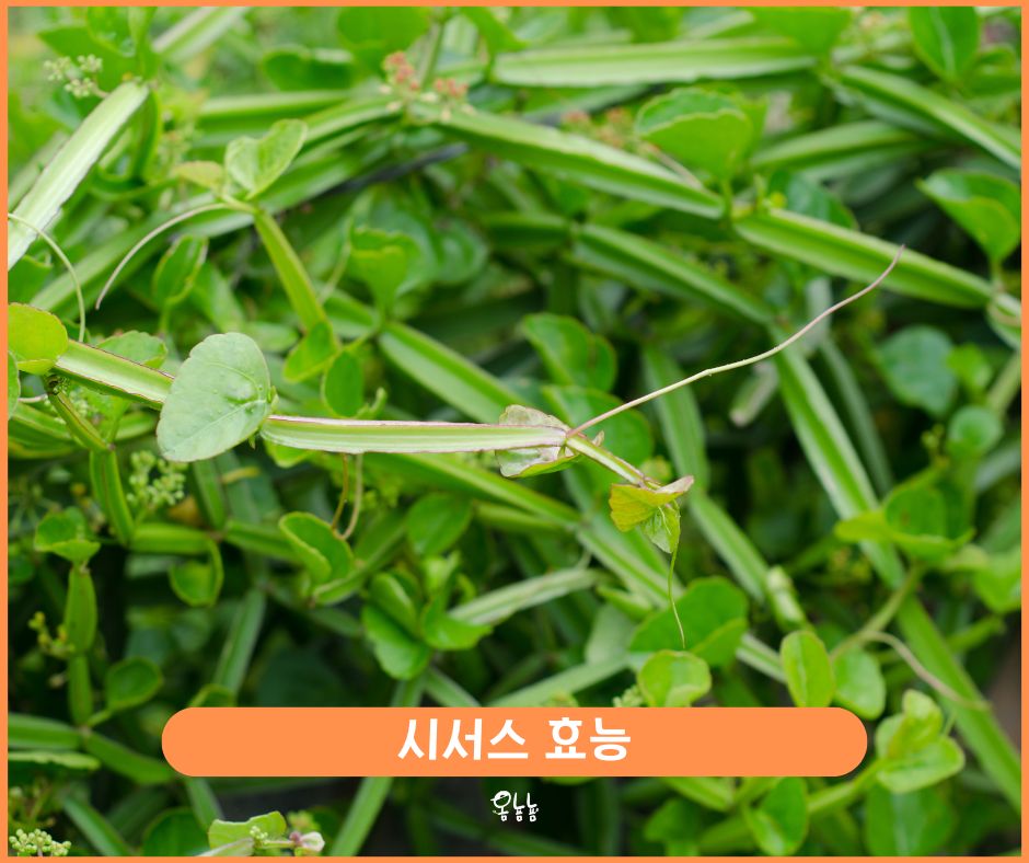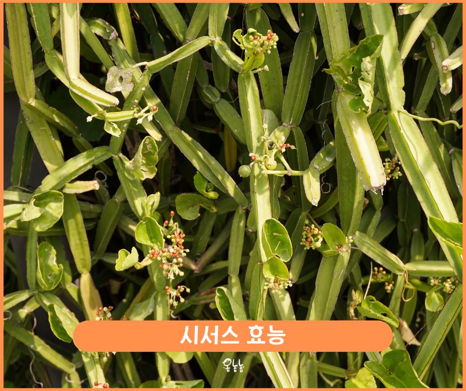 시서스 효능은 다이어트, 심혈관 건강 개선, 뼈 건강 증진, 염증 감소, 호흡기 질환 개선, 당뇨병 관리 지원, 면역 체계 강화, 상처 치유 촉진, 구강 건강 개선 및 생리통 완화 등이 있습니다.