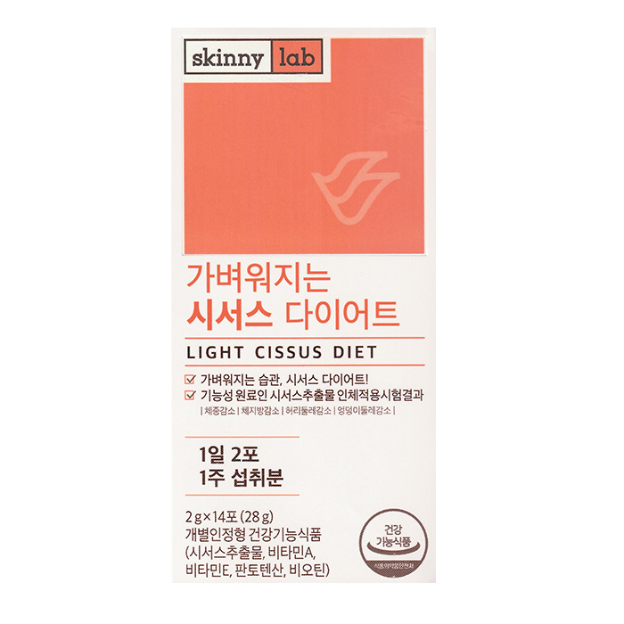 앞서 시서스 다이어트 효과에 대한 논문을 살펴보았는데요. 시서스추출물은 "체지방 감소에 도움을 줄 수 있음"을 식품의약품안전처에서 인정하여 개별인정형원료로 등록이 되어 있습니다. "스키니랩 가벼워지는 시서스 다이어트"는 시서스 가루 형태로 물에 타서 드실 수 있고요 "뉴트리원 비비랩 시서스 원 다이어트"는 정의 형태로 물과 함께 섭취하시면 됩니다. 이 제품들에서는 기능성 정보에서 시서스추출물을 확인하실 수 있습니다.