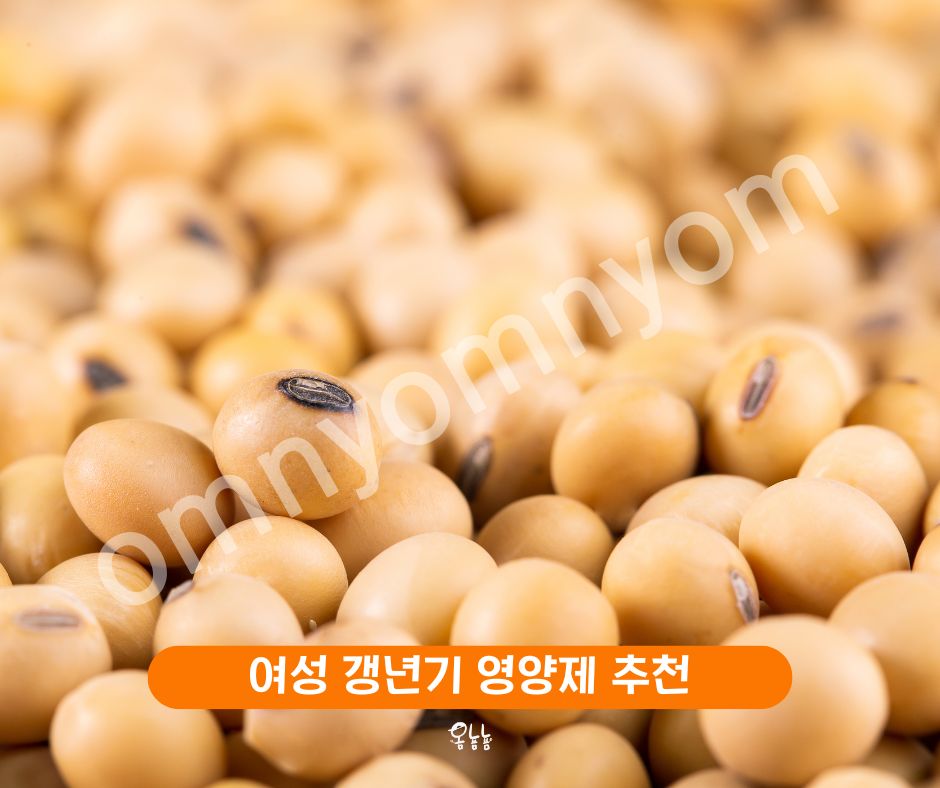 콩에는 식물성 에스트로겐인 이소플라본이 풍부하게 포함되어 있어, 에스트로겐 감소로 인한 증상을 완화하는 데 도움을 줍니다. 이소플라본은 갱년기 증상 중 하나인 안면 홍조를 줄이고, 뼈 건강을 유지하는 데 효과적입니다. 대두추출물등 복합물(제2019-29호)을 함유한 제품을 선택하시면 됩니다.