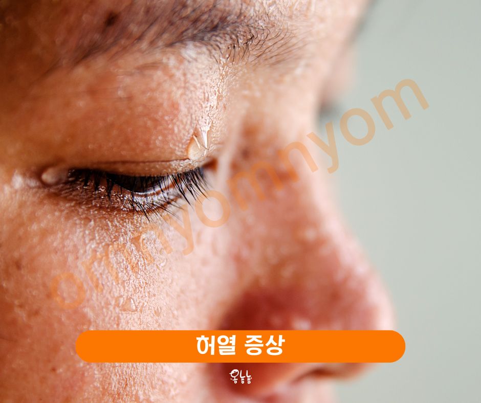 • 땀: 평소보다 땀이 많이 나며, 특히 밤에 땀이 나는 경우가 많습니다.